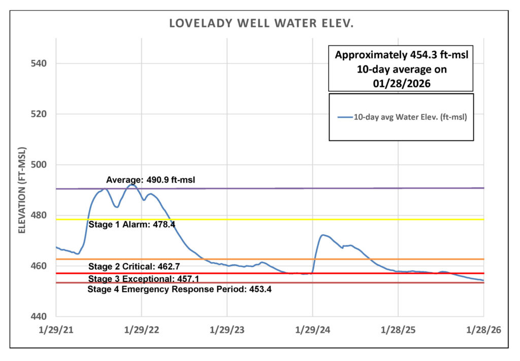 The District has been operating under Stage 3 Exceptional Drought since October 2025 and, as of January 2026, has remained in continuous drought for 43 consecutive months with no sign of relief. While the region received some rainfall this week, drought conditions persist. The winter precipitation did not produce sustained flow in creeks and streams within aquifer recharge zones—an essential process for replenishing groundwater supplies.