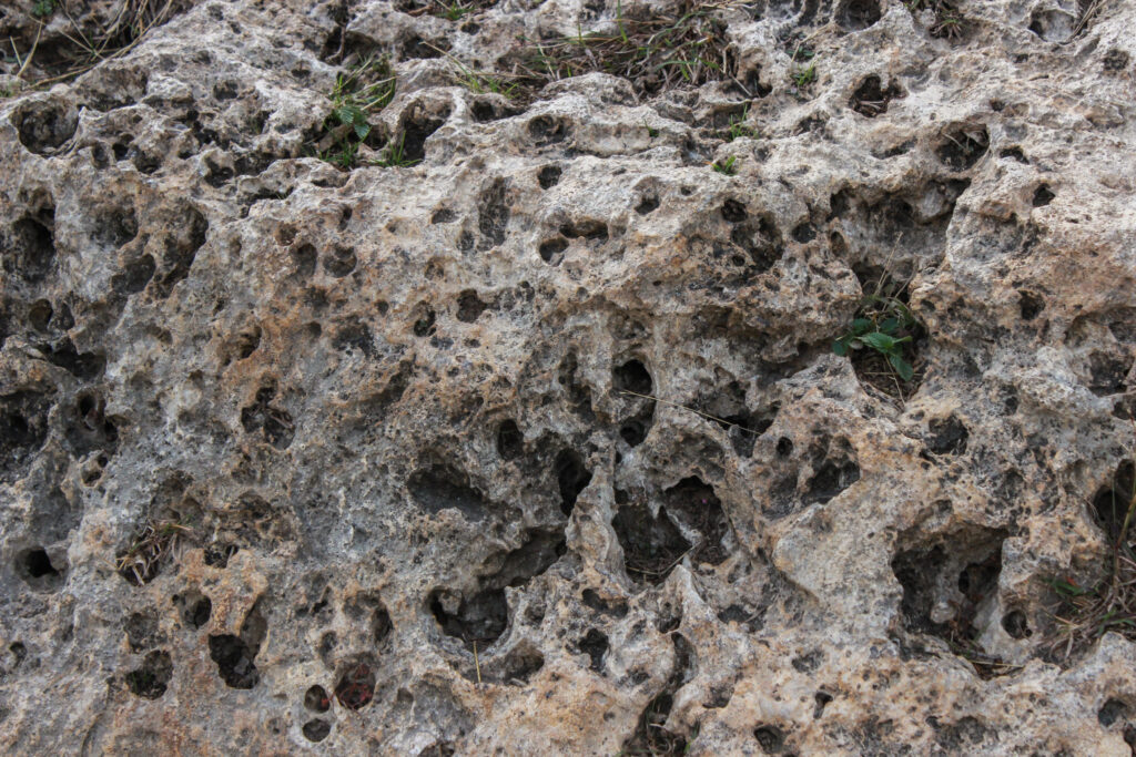 Closeup of the pores in Edwards limestone along the Barton Creek Greenbelt | January 2025