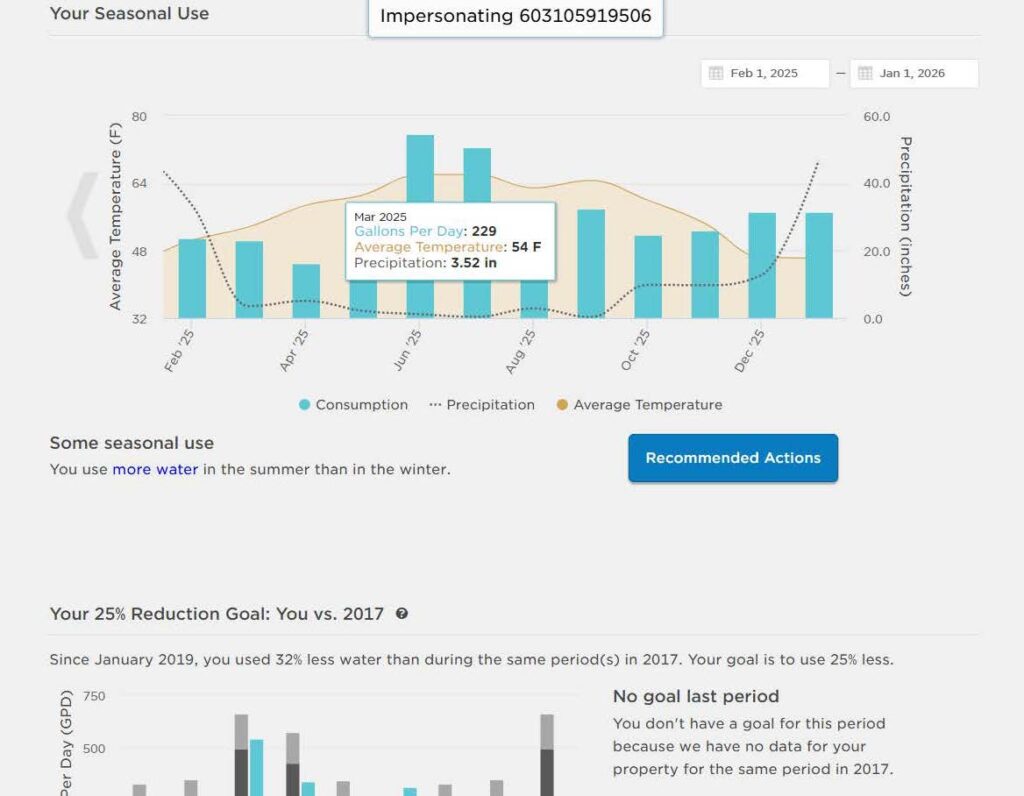 A look at a Ruby Ranch WSC customer’s online portal for their smart meter system.