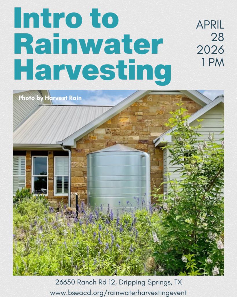 Join us for our “Introduction to Rainwater Harvesting” event. Local experts from Rainbees will present about the basics of local hydrogeology, how rainwater harvesting works, and ways to built a system of your own. Groups will be tabling before and after the event including groundwater conservation districts and local rainwater harvesting retailers.